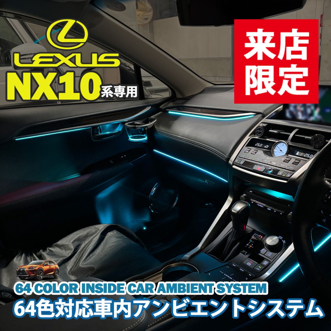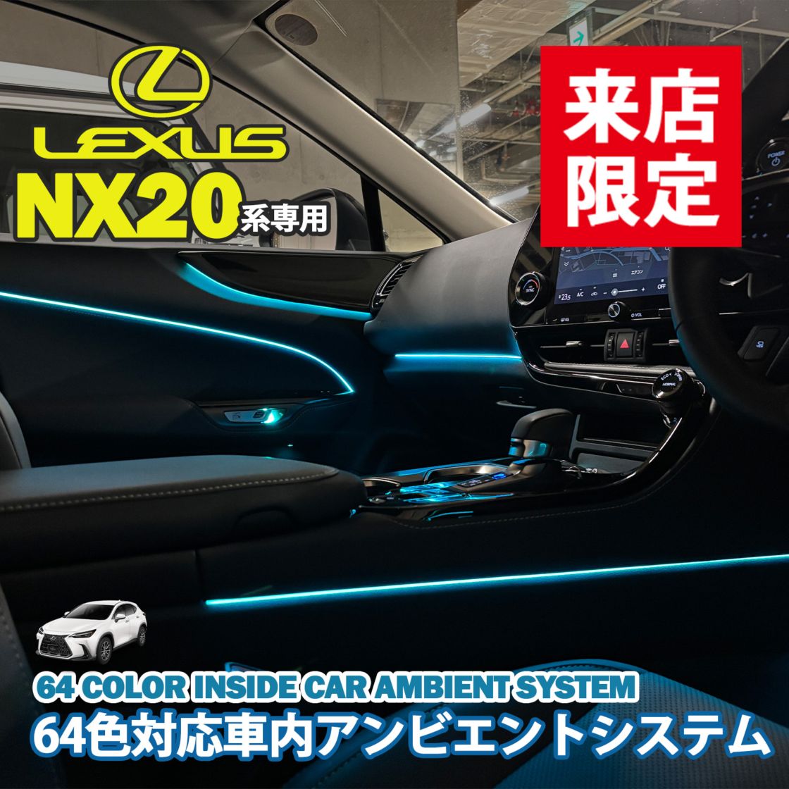 4月限定来店取付工賃込 レクサス NX10系用 64色対応車内アンビエントシステム基本セット LEXUS NX10系 AYZ10 AYZ15 AGZ10 AGZ15