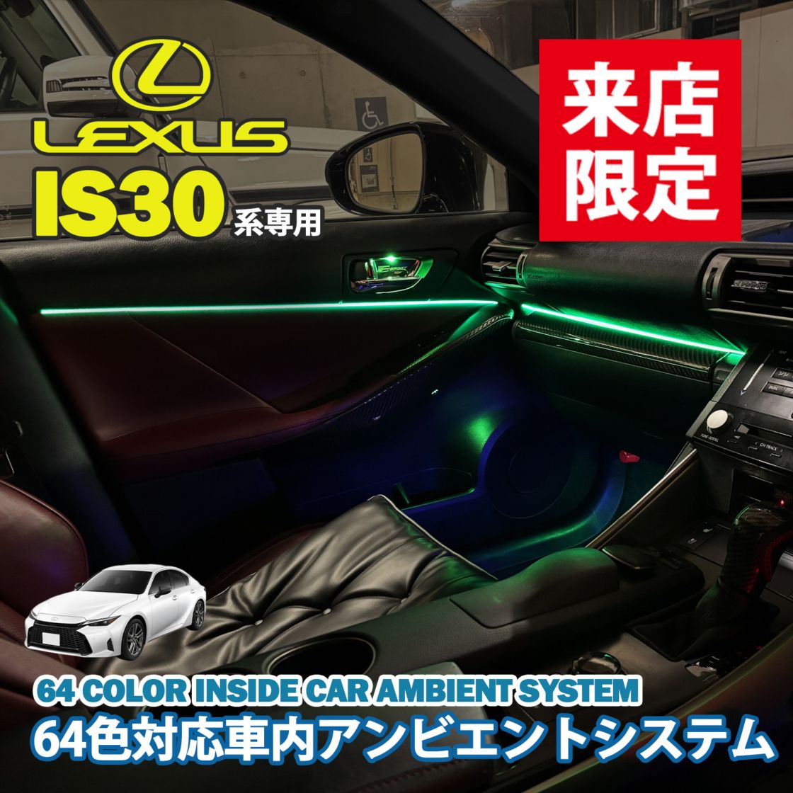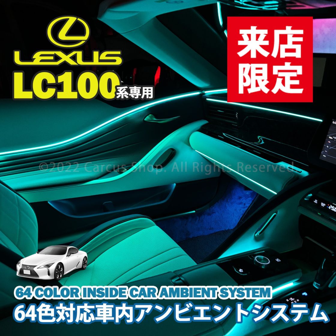4月限定 来店取付工賃込 レクサス LC100系用 64色対応車内アンビエントシステム基本セット LEXUS LC500h LC500 GWZ100 URZ100(イルミネーション)