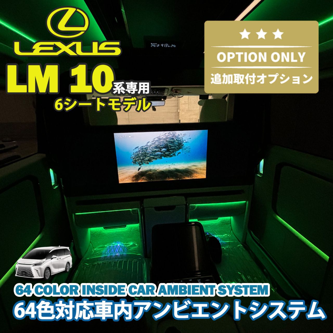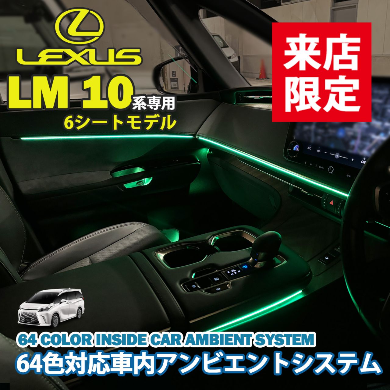 4月限定 来店取付工賃込 レクサス LM10系(6人乗り)用 64色対応車内アンビエントシステム基本セット LEXUS LM500h TAWH15W version L 6人乗り(イルミネーション)