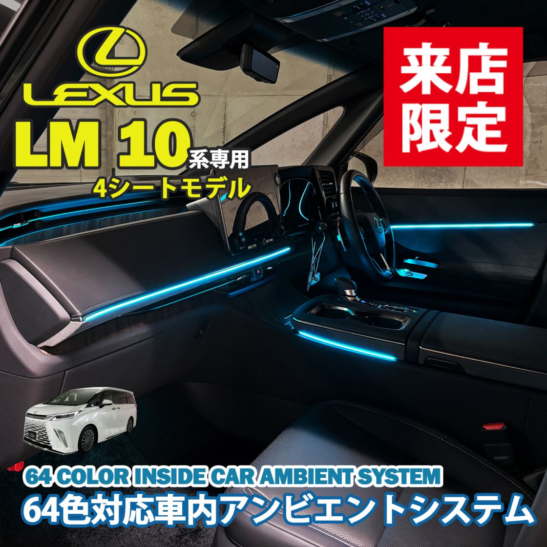 4月限定 来店取付工賃込 レクサス LM10系(4人乗り)用 64色対応車内アンビエントシステム基本セット LEXUS LM500h TAWH15W EXECUTIVE 4人乗り(イルミネーション)