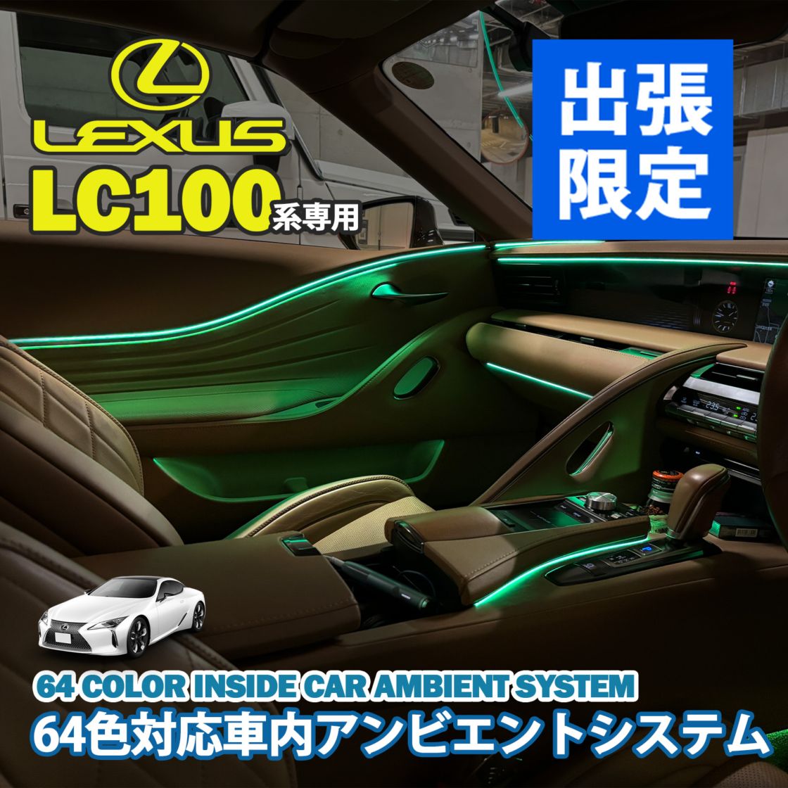 4月限定 出張取付工賃込 レクサス LC100系用 64色対応車内アンビエントシステム基本セット LEXUS LC500h LC500 GWZ100 URZ100(イルミネーション)