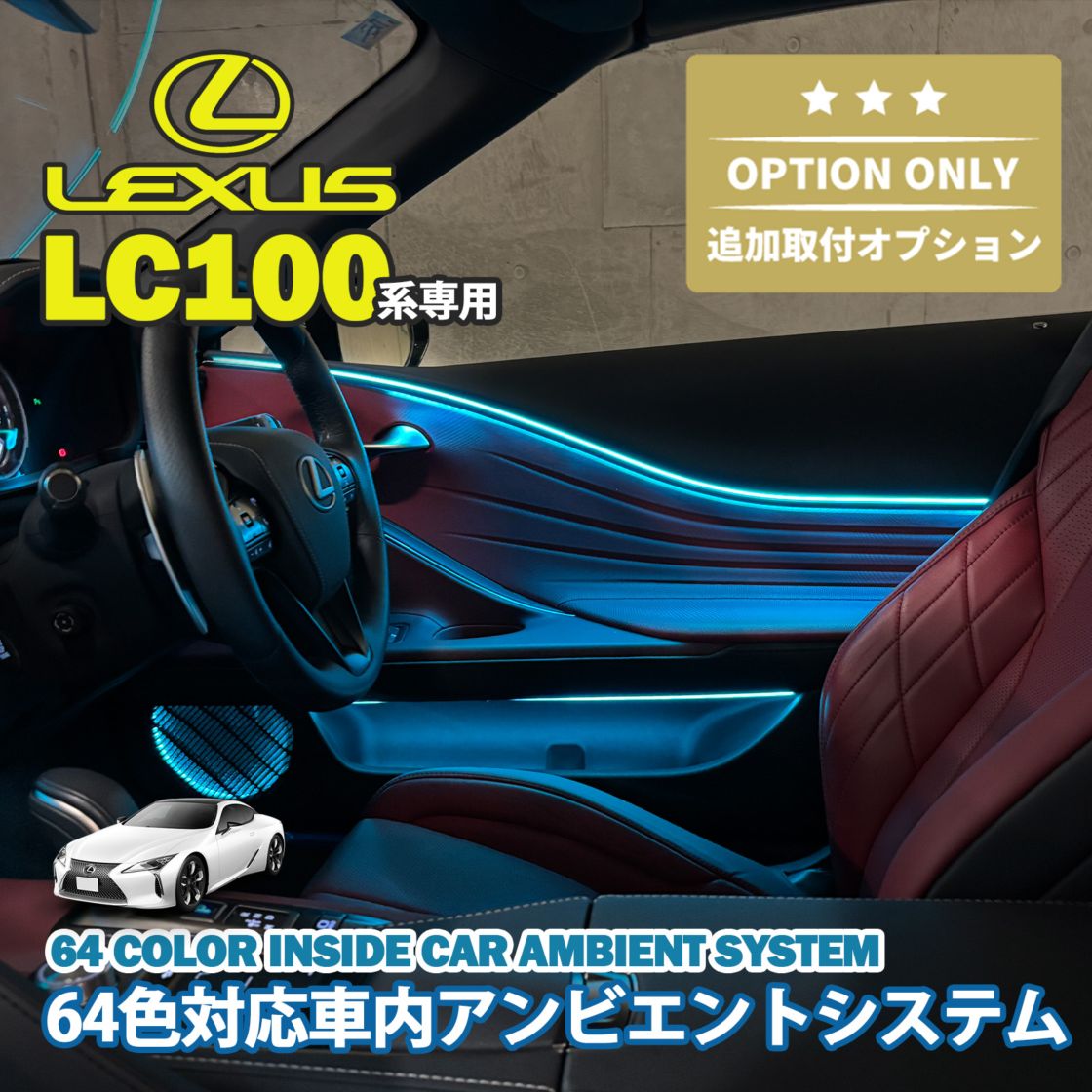 追加取付オプション工賃込 レクサス LC100系用 車内アンビエントシステム取付同時施工用 追加オプションメニュー LEXUS LC500h LC500 GWZ100 URZ100(イルミネーション)