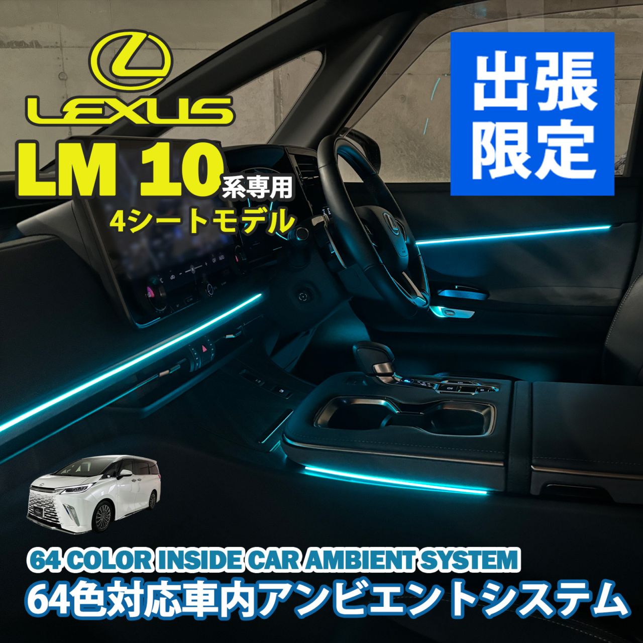 4月限定 出張取付工賃込 レクサス LM10系(4人乗り)用 64色対応車内アンビエントシステム基本セット LEXUS LM500h TAWH15W EXECUTIVE 4人乗り(イルミネーション)